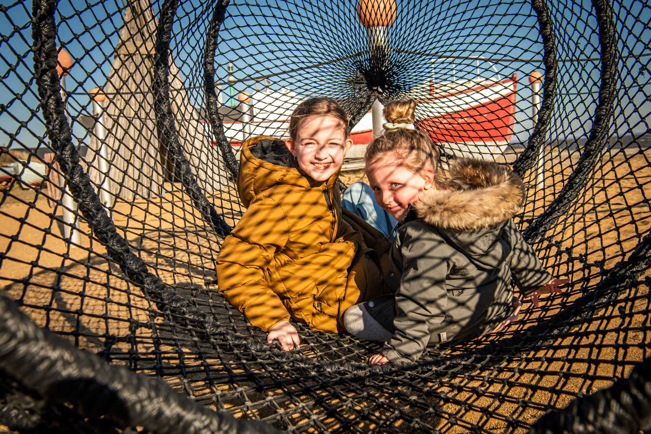 Geh an Bord der Schiffe und spiel für einen Tag Kapitän, mach dich auf eine gemütliche Spurensuche nach Fischen und Meerestieren, die im Wasser bei Hvide Sande leben – oder lass deiner Fantasie auf dem maritim inspirierten Naturspielplatz freien Lauf.
